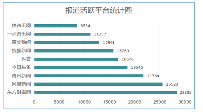 整体来看,报道活跃平台首先是东方财富网,传播篇次高达28385,主因东方财富网为专业的互联网财经媒体,汇聚全方位的综合财经资讯和金融市场资讯,星巴克涨价究其原因主要为市场经济因素导致;其次为网易新闻,传播篇次25523,主因网易新闻目前为国内第一新闻客户端,超过3亿网民下载,流量巨大,影响网民深远;第三为腾讯新闻,传播篇次21760,2003年创立至今,主要服务区域垂直生活服务、社会化媒体资讯。