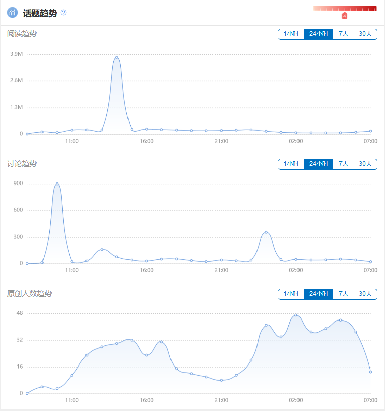 4月7日当天,“刘强东卸任京东CEO”词条冲上微博热搜。热门话题“如何看待刘强东卸任京东CEO”在24小时中,上午10点讨论度最高,下午2点阅读量最高,原创人数也在不断增加。