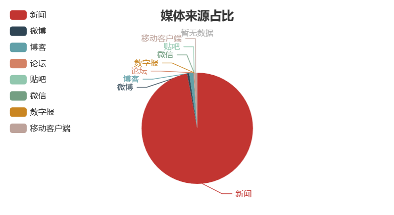 从整体舆情渠道分布来看,主要集中在新闻渠道,占比97.09%,数据达2100篇,为传播渠道主要阵地。