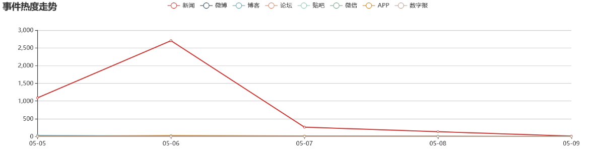 通过蓝太平洋对各渠道的舆情监测,事件热度在5月6日达到高峰,之后则呈下降趋势。